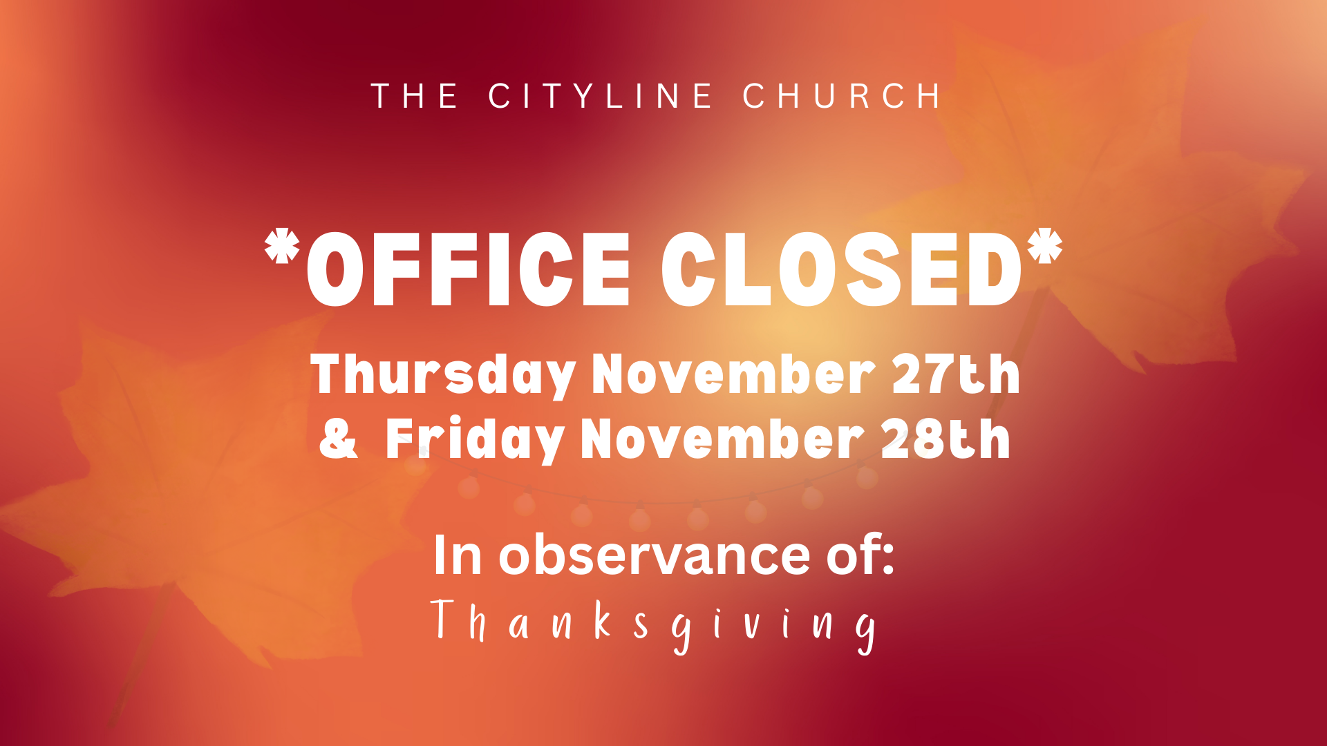 Posted on November 15, 2025 Posted By: Staff Categories: News In observance of Thanksgiving Day, the CLC Office will be closed on THURSDAY and FRIDAY this week.