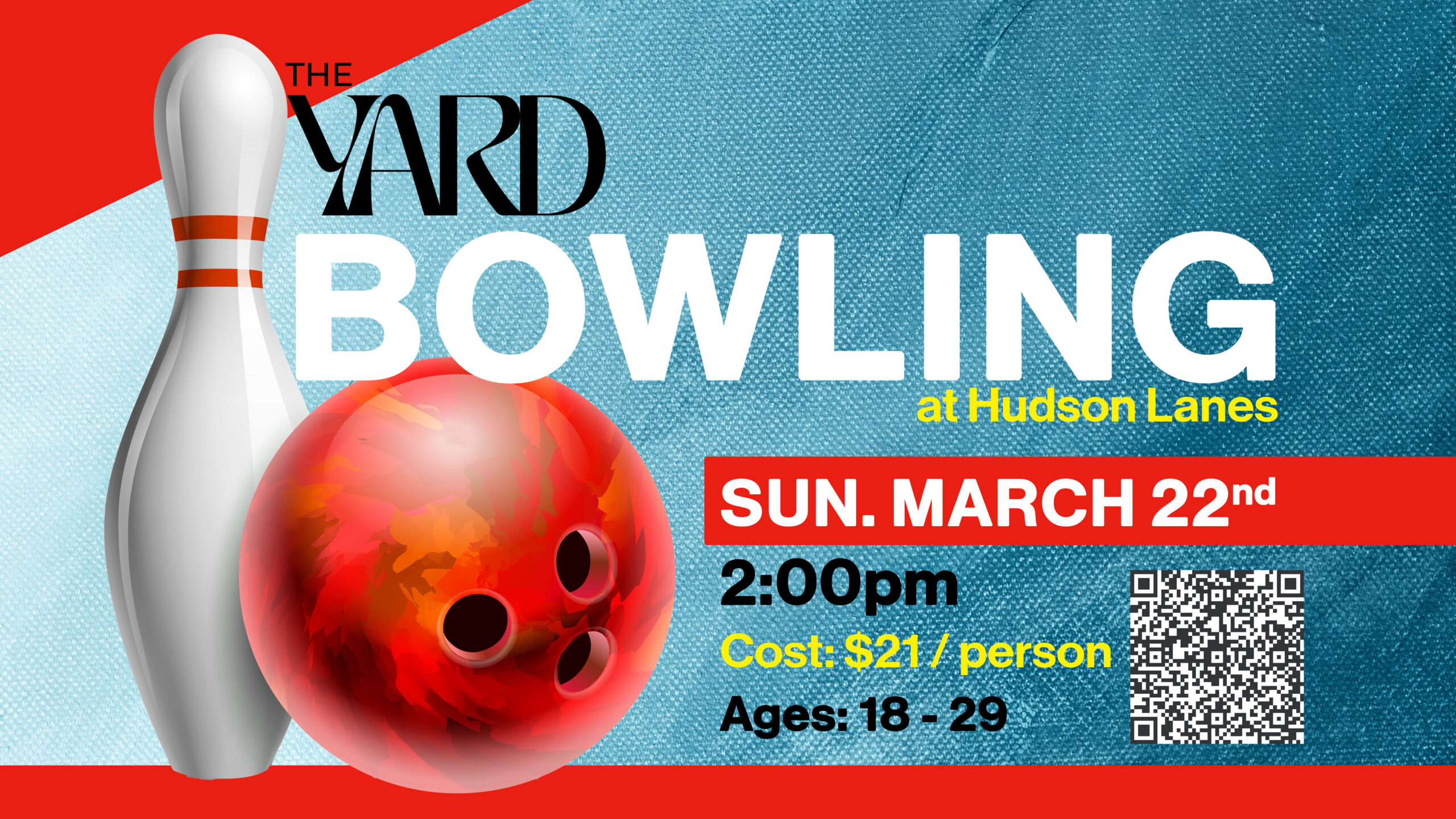 REGISTER HERE if you’re 18 to 29, as we’ve got something fun coming up with The YARD. On Sunday, March 22nd we’re heading over to Hudson Lanes for an afternoon of bowling, food, and hanging out together. Whether you’re a bowling pro or your form is…questionable, you’re invited. The cost is $21 per person, and it includes bowling, pizza, wings, and soda. If you’re interested, register through the Church Center app. Bring a friend and come hang with us! We hope to see you there!